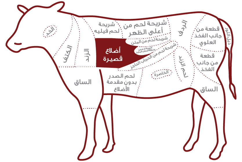 تشمل الأضلاع القصيرة عظم الضلع واللحم الوربي وطبقة من لحم الضلع والدهون. وهنالك العديد من الطرق لتشفية الأضلا، وعادة ما يتم تحديدها من خلال أسلوب إعداد الطبق. الأضلاع القصيرة غنية بنكهتها، وإذا تم تحضيرها بشكل صحيح، فهي تكون رقيقة للغاية.